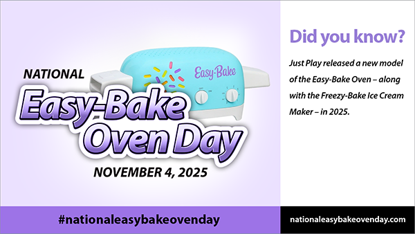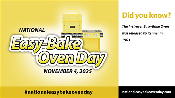 It’s the Easy-Bake Oven’s birthday, and everyone should know about it! Celebrate the occasion with a collector, a fan, or a loved one by sending one (or more!) of these eCards. Each eCard comes with a link to the official 2025 National Easy-Bake Oven Day Paper Foldable.